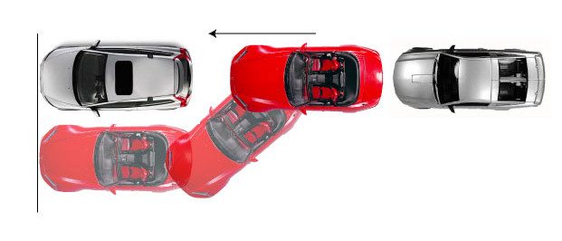 Try and envision pushing the steering wheel towards the direction that you wish the back of the car to go. Do not swing the front of your vehicle into that space too early to avoid hitting the vehicle in front of you.